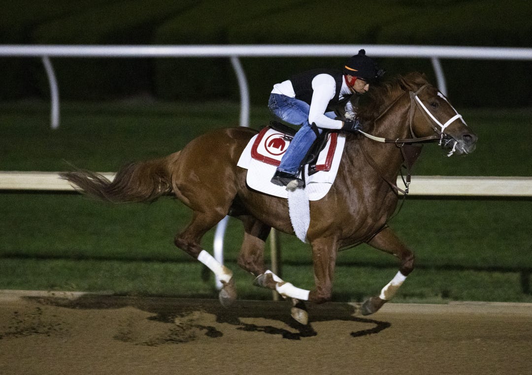Rich Strike, most recently a close second to Hot Rod Charlie in the Grade 2 Lukas Classic, and regular exercise rider Gabriel Lagunes came onto the track as it opened at 5:30 a.m. Rich Strike proceeded to breeze five furlongs in 1:02.71 on the watch of Daily Racing Form's Mike Welsch. He galloped out six furlongs in 1:16.04.