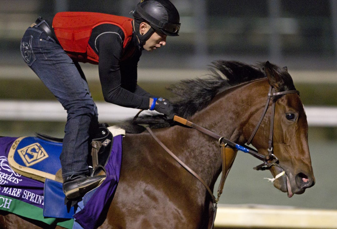 Less than 24 hours after arriving in Louisville, Baffert sent out the likely Derby favorite Bodemeister to work five furlongs in company with one of his three Kentucky Oaks hopefuls, Jemima’s Pearl, on a clear and crisp Tuesday morning under the Twin Spires. The Baffert show continued about 15 minutes later when his undefeated filly Mamma Kimbo also worked for the Oaks.