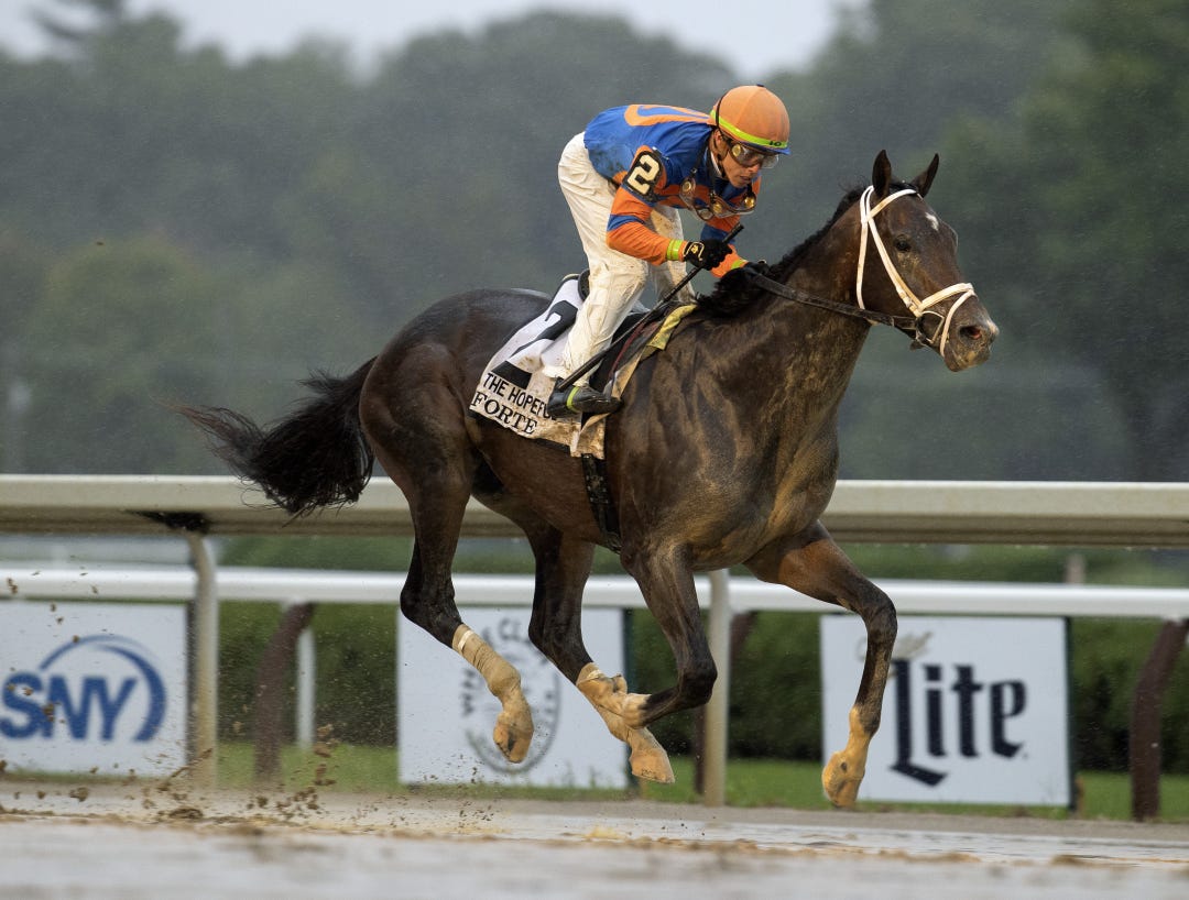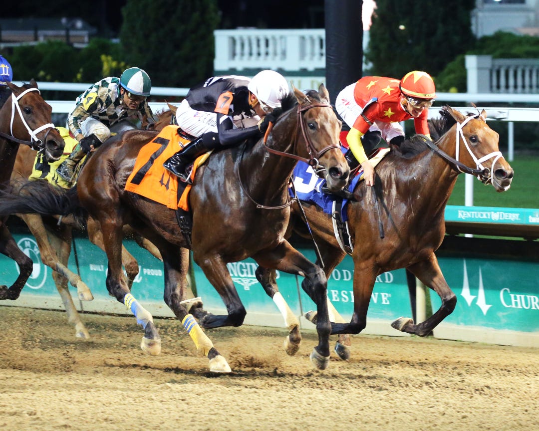Hoosier Philly ($4.14) got a 75 Beyer Speed Figure in winning the 5 1/2-furlong race in 1:04.35 under Edgar Morales. The daughter of uber-sire Into Mischief waited not far off a swift early pace before surging to a 1 3/4-length triumph that seems to portend very good things for the future.