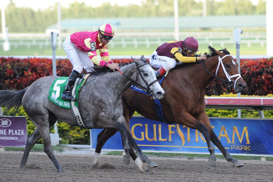 Earlier in the meet, Gleaming accounted for the first race in the series, the $50,000 American Beauty. The third and final leg, the $75,000 Carousel on April 12, will likely be the next start for Gleaming, said her trainer, Bret Calhoun.
