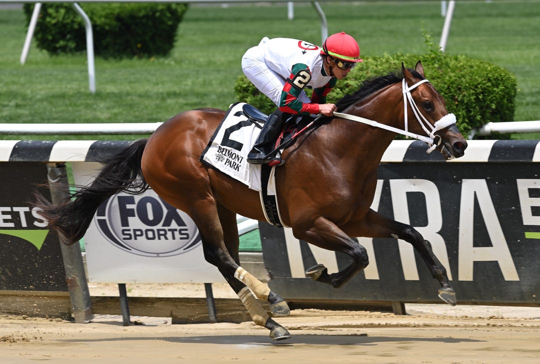 Breaking alertly from the rail under Irad Ortiz Jr. Andiamo a Firenze got loose on the lead through fractions of 22.49 seconds, 45.90, and was taken in hand by Ortiz coming to the wire as he covered 5 1/2 furlongs in 1:04.27 over a sealed, sloppy track.