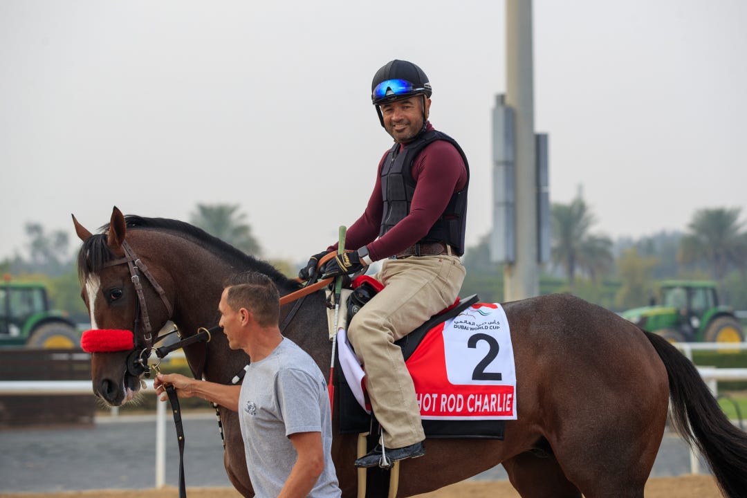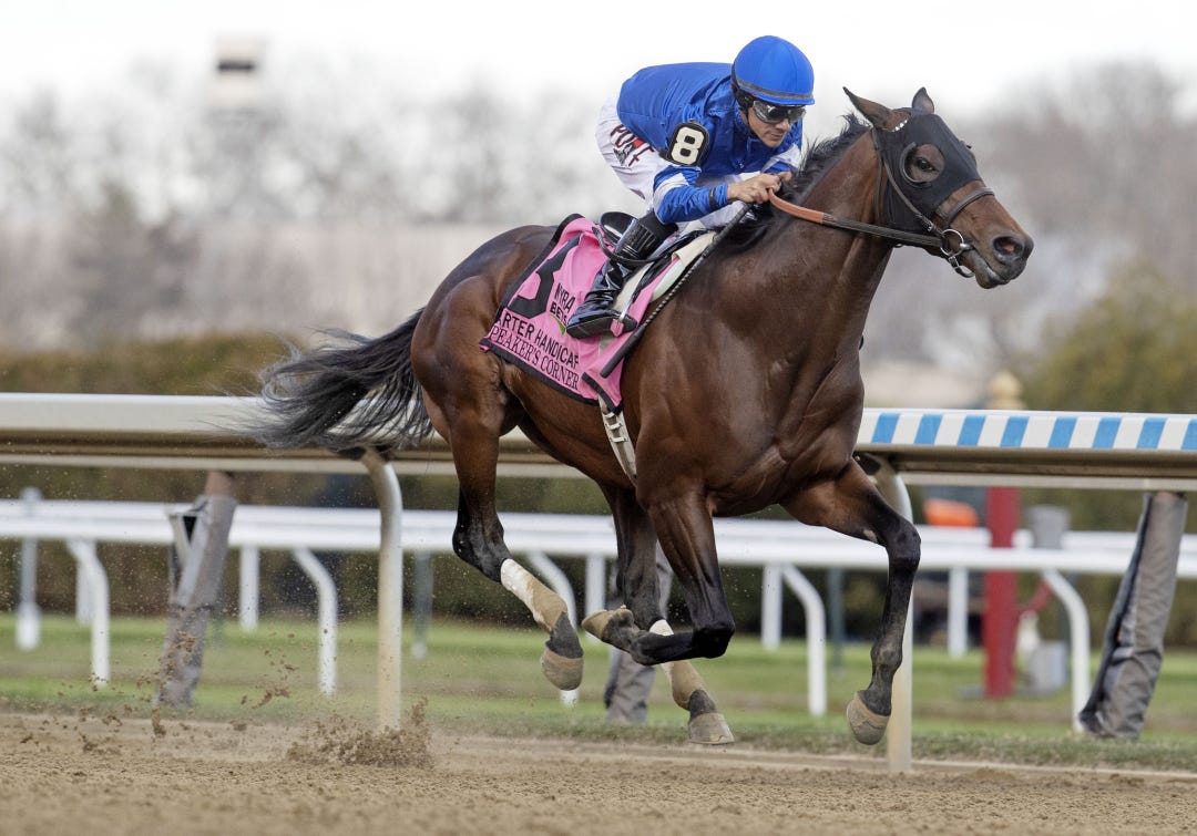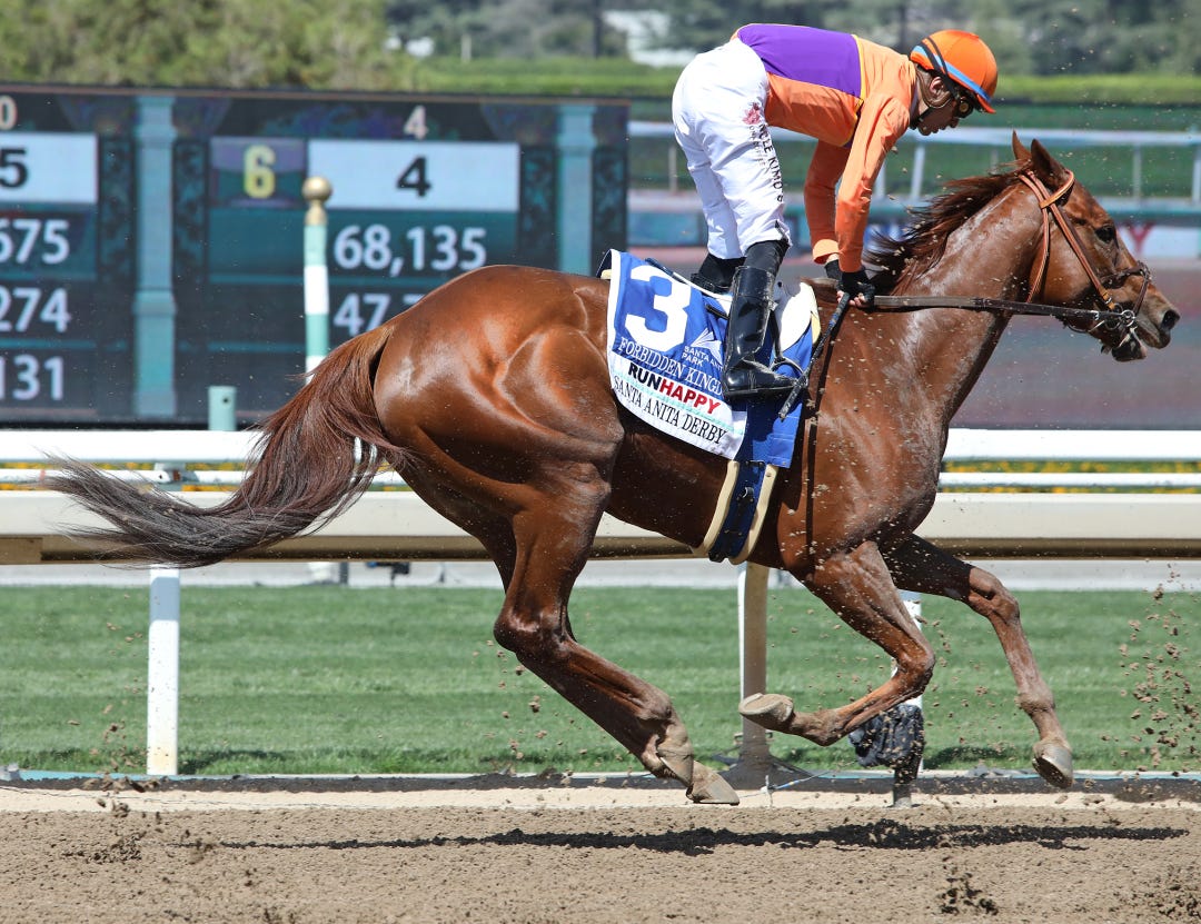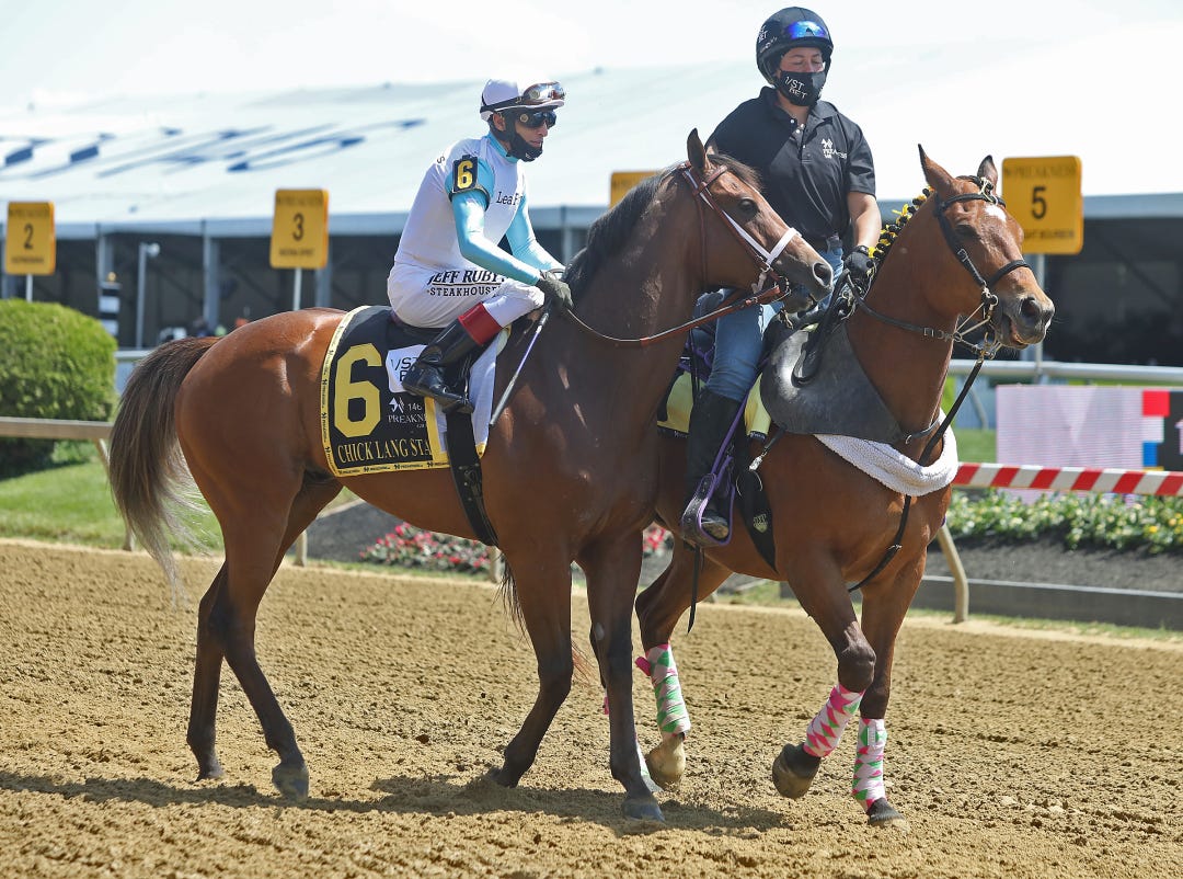 Trainer Eric Reed watched the work from atop the five-furlong clocker’s stand on the Churchill backside. Rich Strike was ridden by regular exercise Gabriel Lagunes over a freshly harrowed track rated fast.