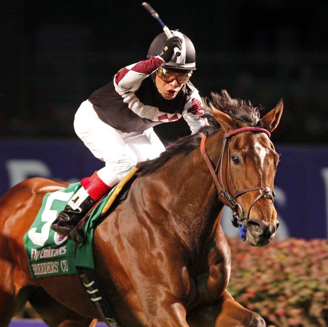 Shotgun Gulch, with Garrett Gomez riding, wins the Vinery Madison.