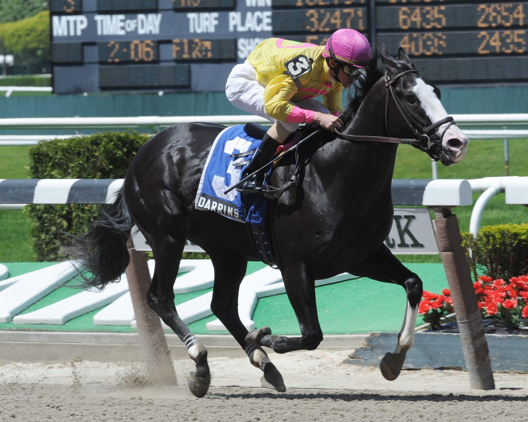 ELMONT, N.Y. - Darrin’s Dilemma, bet early and often, lived up to her 1-4 odds with a front-running, 2 1/4-length victory under Ramon Dominguez in Wednesday’s $100,000 Times Square division of the New York Stallion Stakes for 3-year-olds at Belmont Park. Freud’s Honor finished second, three lengths ahead of Warrior Up.