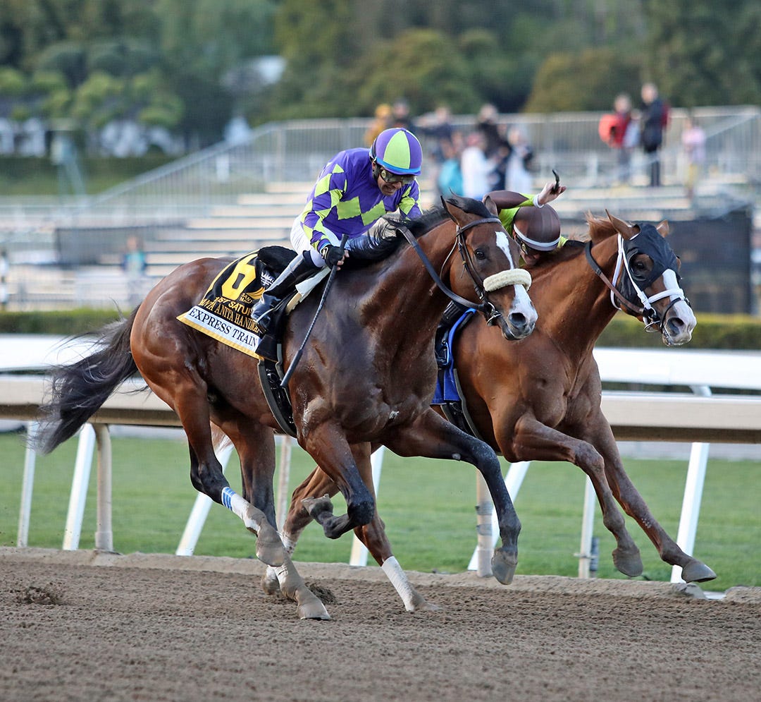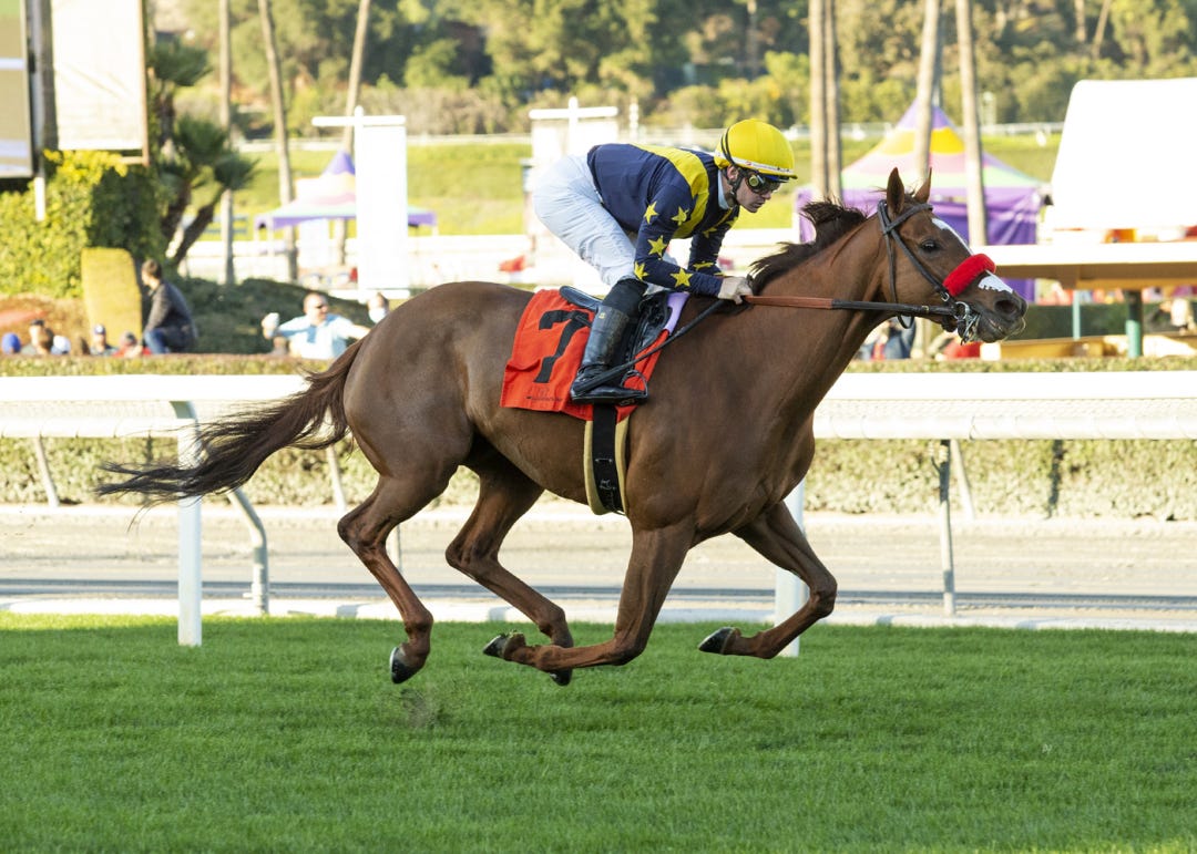 Luck pulls 3 1/4 lengths clear in the Robert J. Frankel Stakes on Saturday at Santa Anita. The victory was one of six on the day for jockey Flavien Prat.