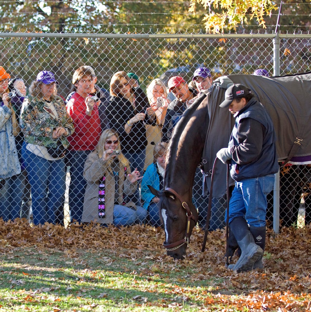 LOUISVILLE, Ky. – Zenyatta finished second in her final career start Saturday in the Breeders’ Cup Classic, but she remained first in the hearts of her adoring fans here Sunday morning at Churchill Downs, literally stopping traffic on a public road adjacent to the barn area when motorists realized she was out grazing.