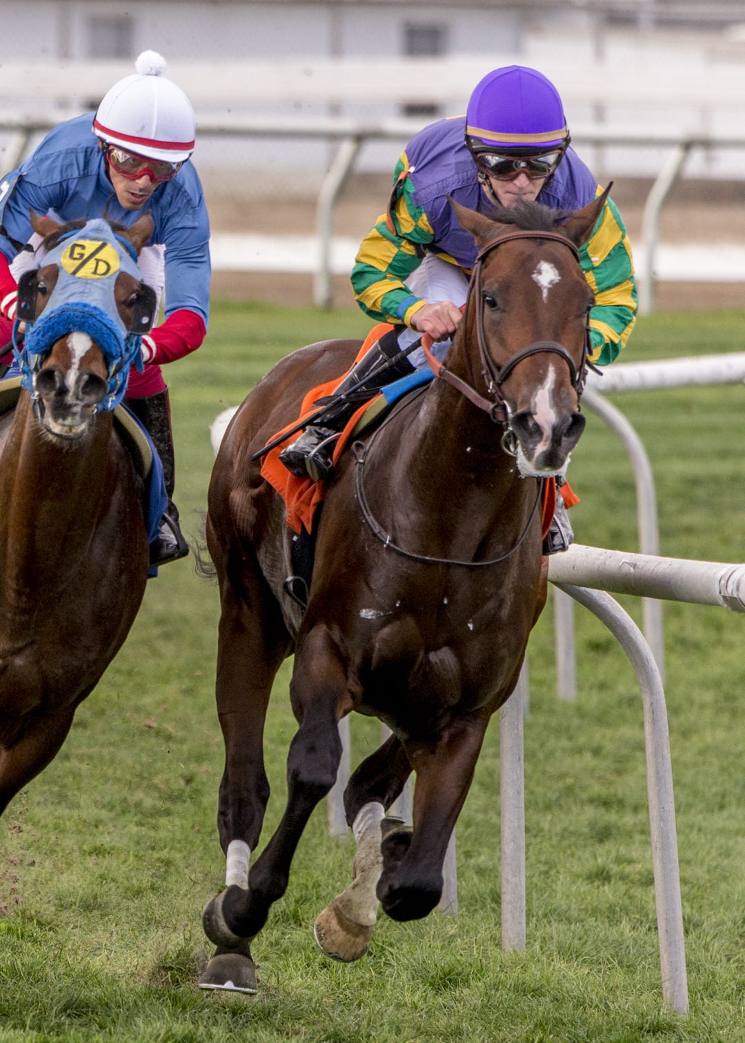 Dowagiac Chief’s five-length romp in the Black Gold Stakes for 3-year-old grass horses Saturday yielded a career-best 88 Beyer Speed Figure. Now a three-time winner from six grass starts, Dowagiac Chief, if all goes well, runs back in the $400,000 Transylvania Stakes on April 8 at Keeneland.