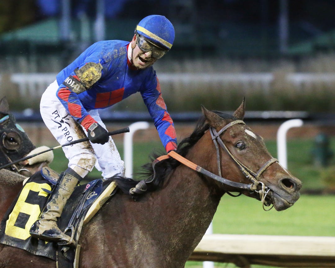 There was no turf racing on the Dec. 26 program because of rain in the preceding days. Rain after lunch on Monday led to the transfer of turf races to the main track midway through the program.