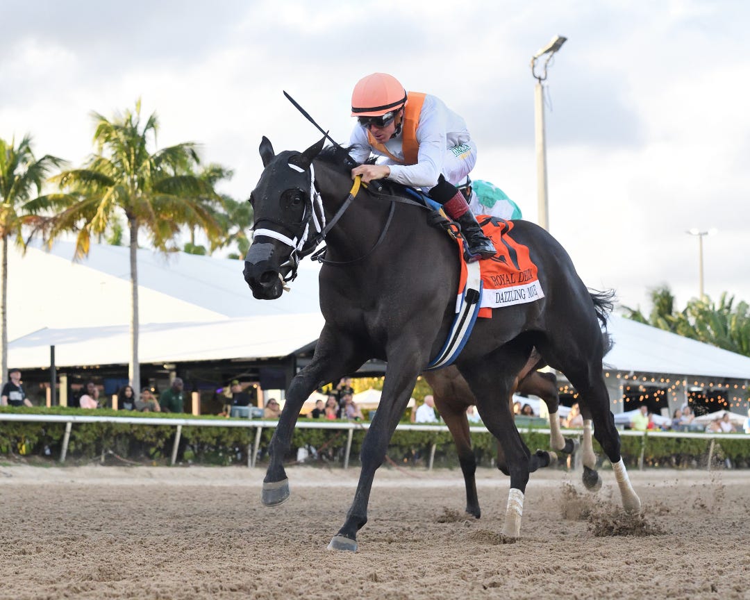 Dazzling Move set the pace before being passed by Dorth Vader – the second-longest price in the field – in the Ogden Phipps, a race run over a sloppy track that Raging Sea didn’t like, as she checked in third.