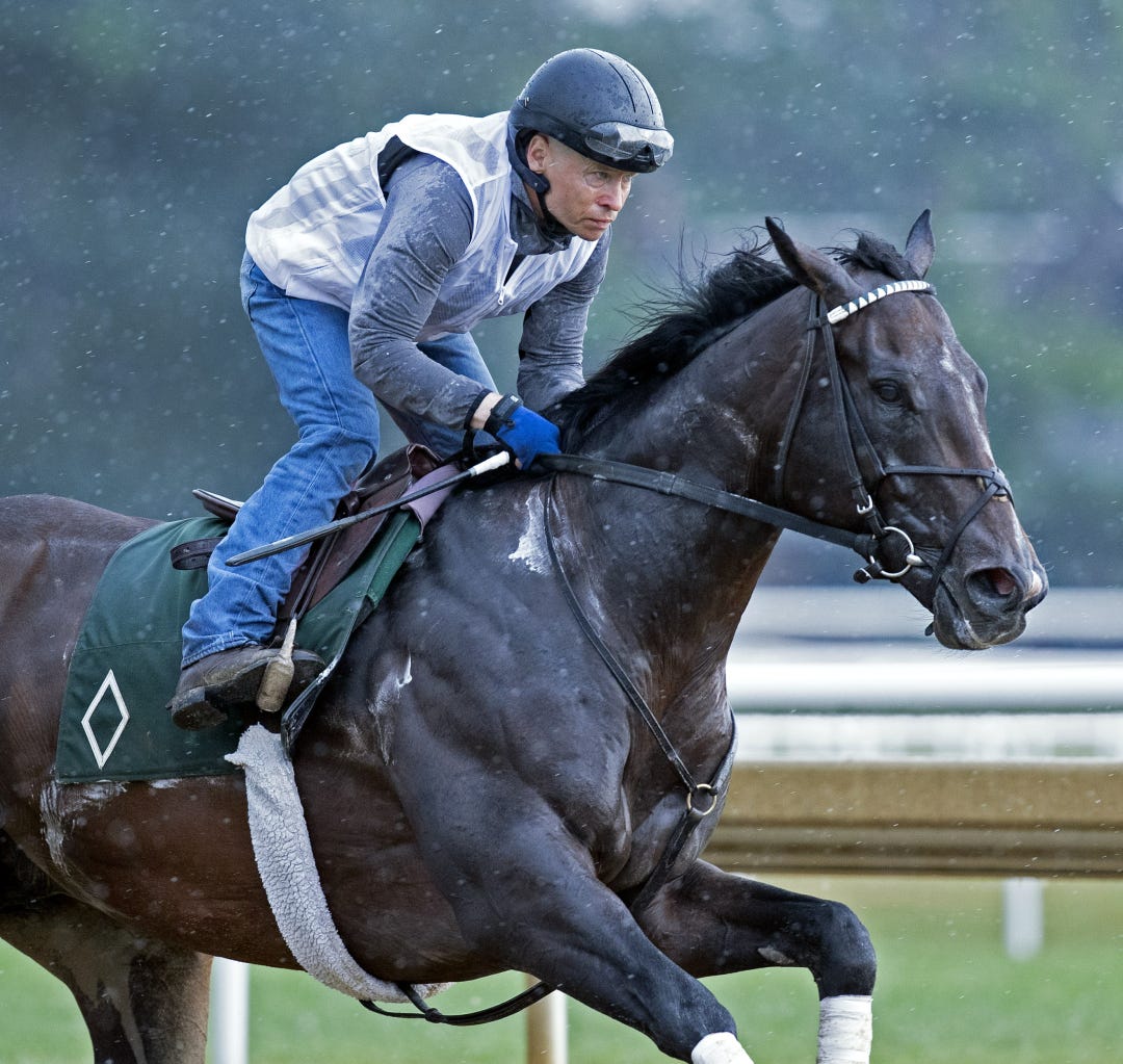 SARATOGA SPRINGS, N.Y. – Another apocalyptic rainstorm hit Saratoga early Saturday morning but that didn’t dampen the enthusiasm of Hall of Fame trainer Bill Mott, who watched his dual classic winner Sovereignty nearly beat the rain while putting in a solid workout in preparation for the Grade 2, $500,000 Jim Dandy Stakes here on July 26.