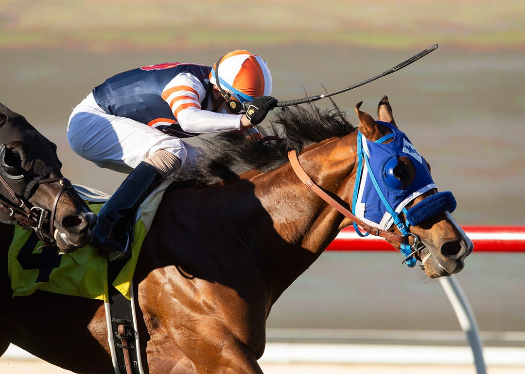 ARCADIA, Calif. – Vivacious Vanessa looked beaten in a one-mile maiden special weight race for California-bred 2-year-old fillies on turf on Saturday at Santa Anita – until she reached the eighth pole.