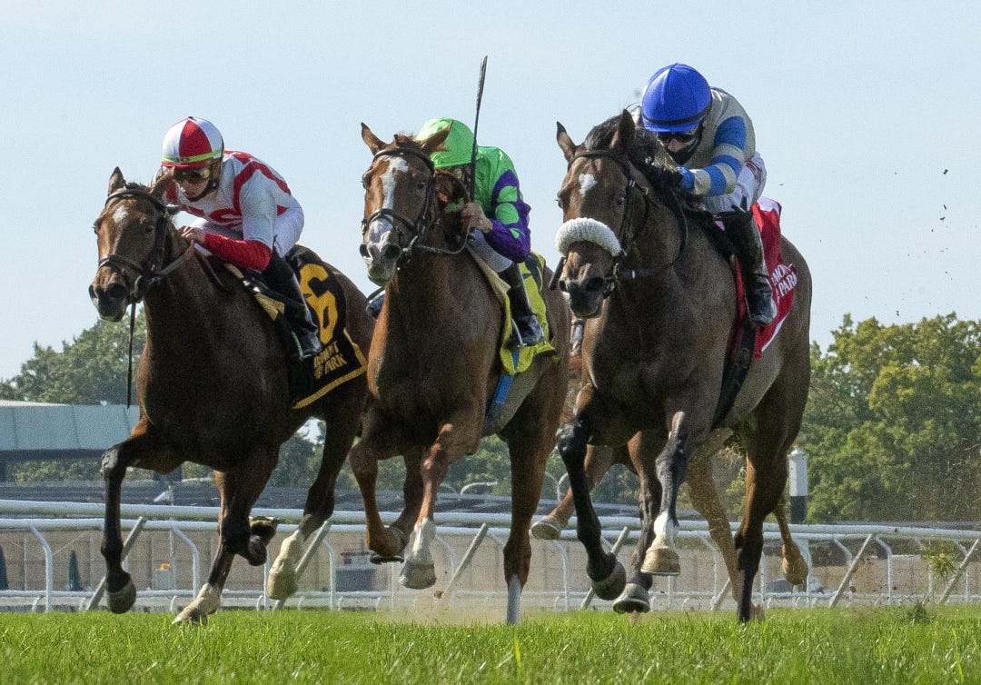 Sail By sat an up-close second to a slow pace and still showed a strong late kick that she did when she came from off the pace to win a maiden race sprinting here in the summer. She won the Miss Grillo by a length over Kinchen.