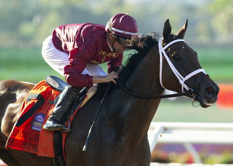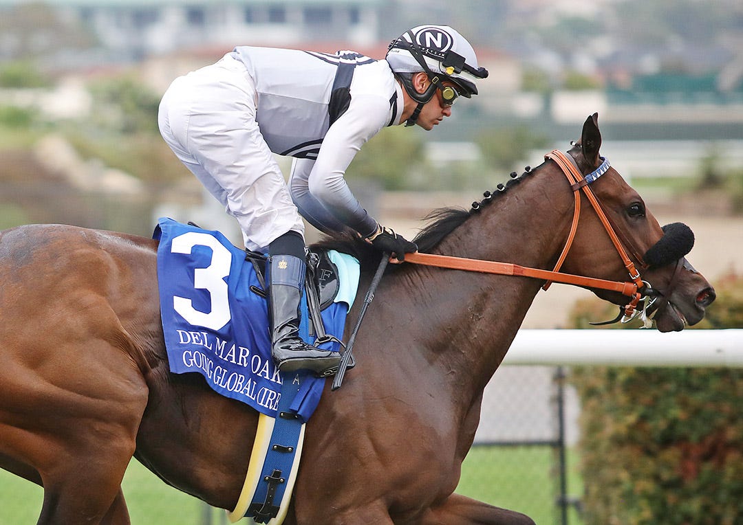 Going Global won the Grade 1 Del Mar Oaks at 1 1/8 miles on turf on Aug. 21 in her most recent start. She won four stakes at Santa Anita earlier this year.
