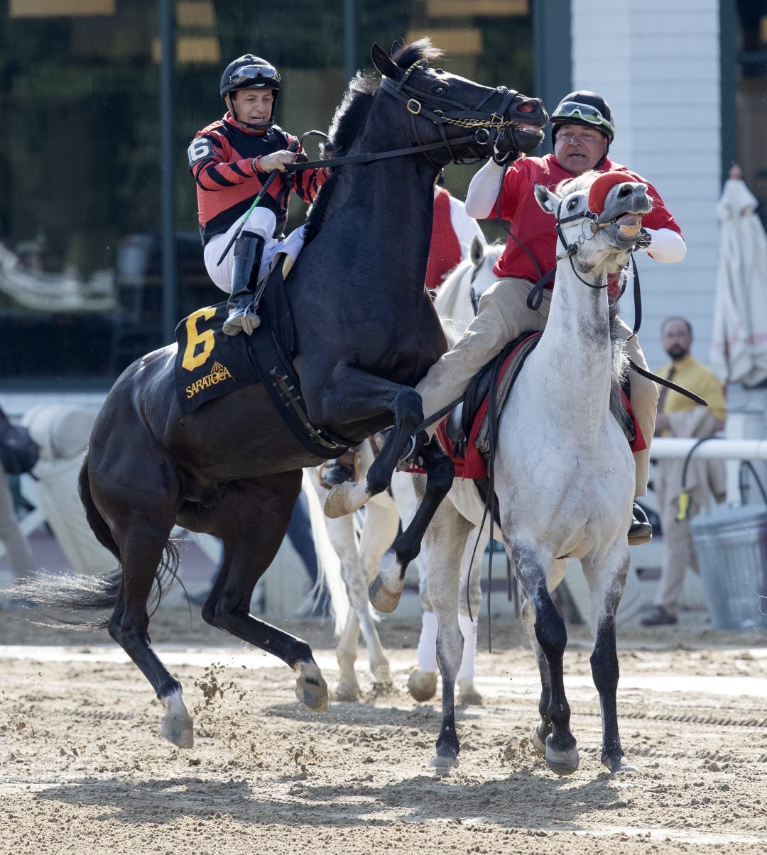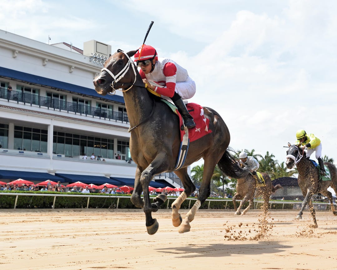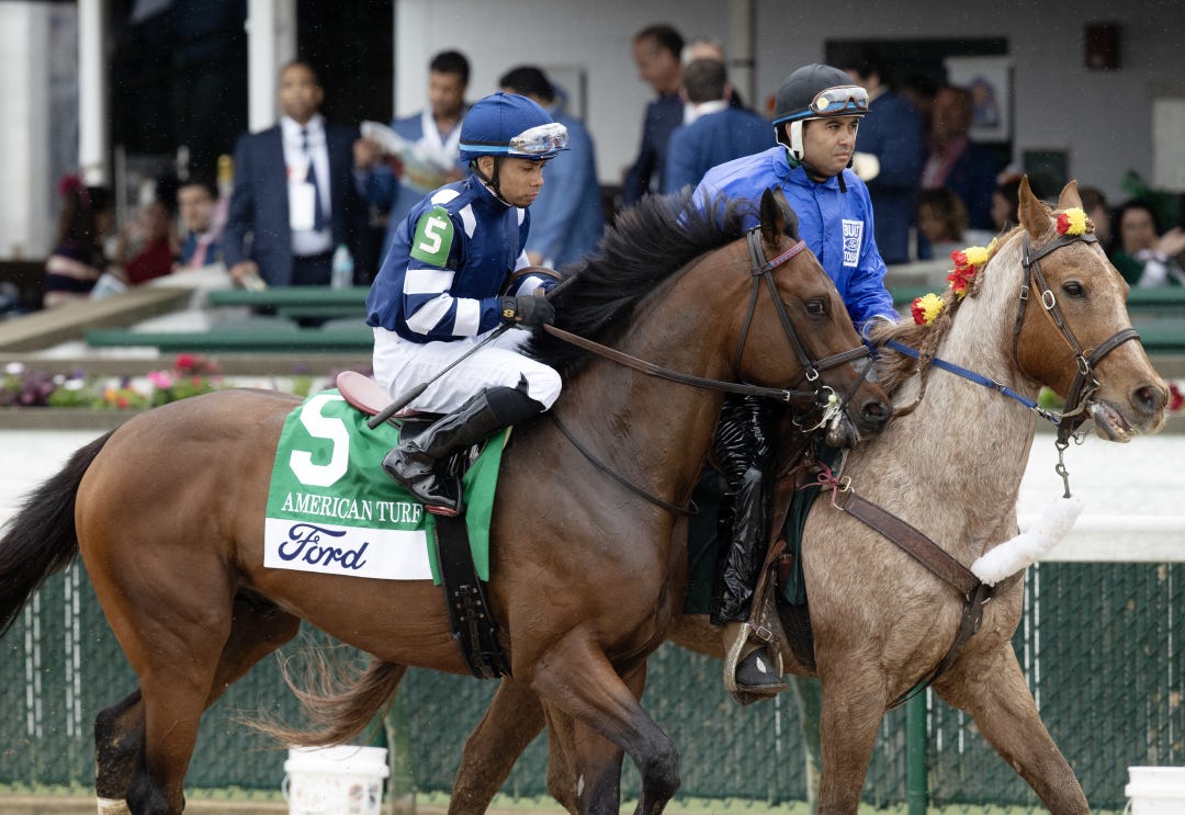 On Tuesday, the track and its stable area were inundated with runoff from a massive rainstorm that struck mountains near the track. The flood was so severe that the racing surface and infield were covered in water. The single-story jockeys’ room, located on the infield, was flooded briefly to its roof line.