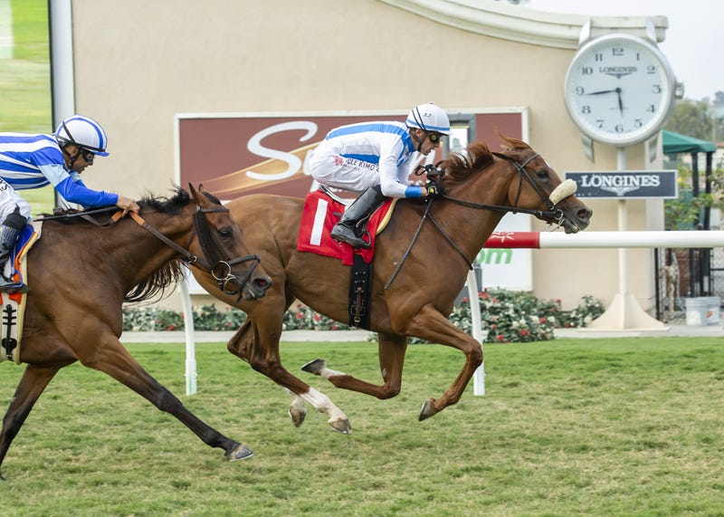 Acclimate comes into the 1 3/8-mile Del Mar Handicap off a victory in the 1 3/4-mile San Juan Capistrano (above).