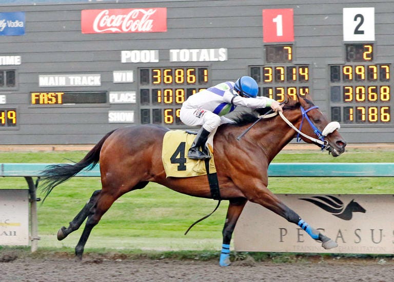 Butter Lou, a 2-year-old New York-bred colt trained by Falcone Jr. for his father, Robert, won a 5 1/2-furlong maiden race by three-quarters of a length Thursday. But just nearing the wire, Butter Lou stepped in a hole, according to his rider Luis Saez. Saez pulled the horse up shortly past the wire and jumped off.