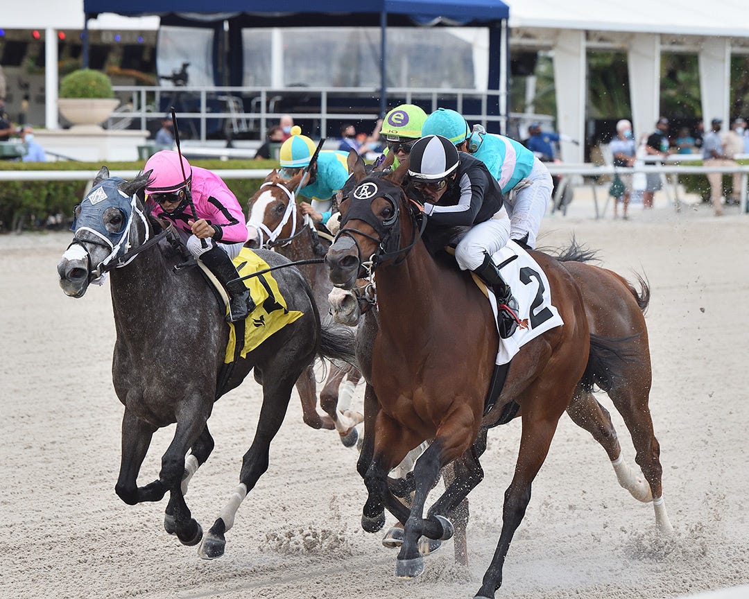 Big City Lights, owned by William Peeples, won the Fasig-Tipton Futurity by 7 1/4 lengths in his stakes debut. Unbeaten in two starts, Big City Lights is trained by Luis Mendez.