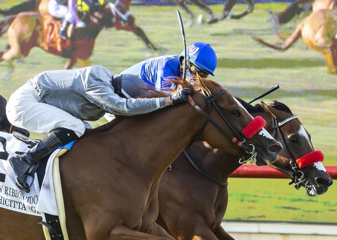 Ridden by Kent Desormeaux for his brother Keith, Street Art took the lead shortly after the start and was never bothered by his four rivals, pulling away by four lengths. Sent off favored, Street Art paid $5.40 and was timed in 52.05 seconds.