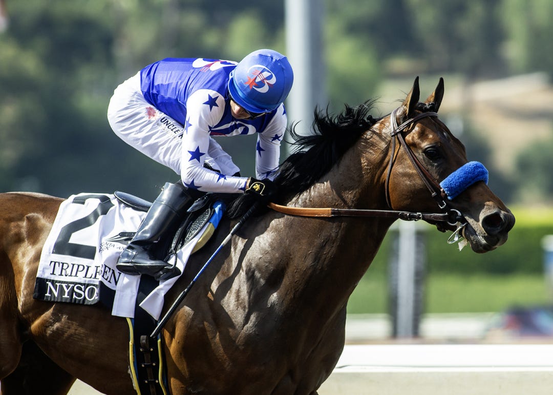 Nysos, trained by Bob Baffert for Charles and Susan Chu’s Baoma Corp., was second by a neck in the Grade 1 Churchill Downs Stakes at seven furlongs on May 3 in his first start of the year. Nysos was the brilliant winner of the Grade 3 Triple Bend Stakes at seven furlongs at Santa Anita on May 31 in his most recent appearance.