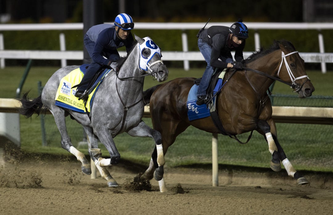 LOUISVILLE, Ky. – Essential Quality, who has won all his races and will almost certainly be the Kentucky Derby favorite, and Mandaloun, soundly defeated last out as the favorite in the Louisiana Derby, put in their final Derby works Saturday morning at Churchill Downs for trainer Brad Cox.
