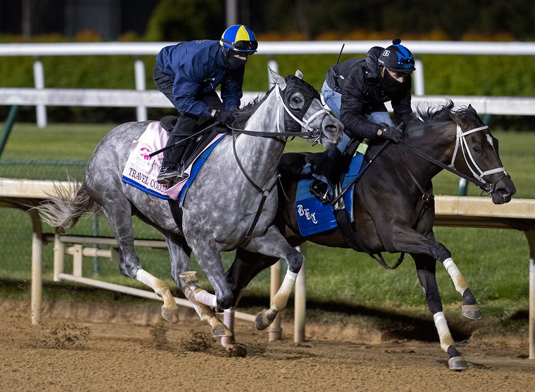 The colt, under regular work rider Julio Garcia, broke off two lengths behind stablemate Artie’s Princess, who earlier this month was named Canada’s champion female sprinter of 2020. Like the King collared his workmate easily in the stretch and was edging clear at the wire as Keeneland clockers credited him with five furlongs in 1:01. The duo galloped out in 1:15.40.