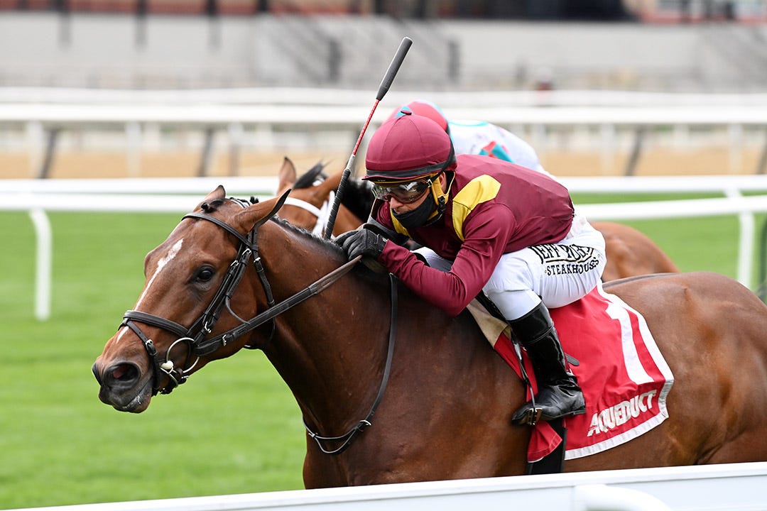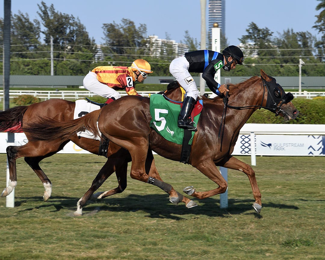 HOT SPRINGS, Ark. – Mr. Wireless and Stilleto Boy could be considered brothers from another mother. The 3-year-old geldings were raised together, received their early training together, and finished a nose apart for separate trainers when running 1-2 in a maiden special weight March 27 at Oaklawn Park.