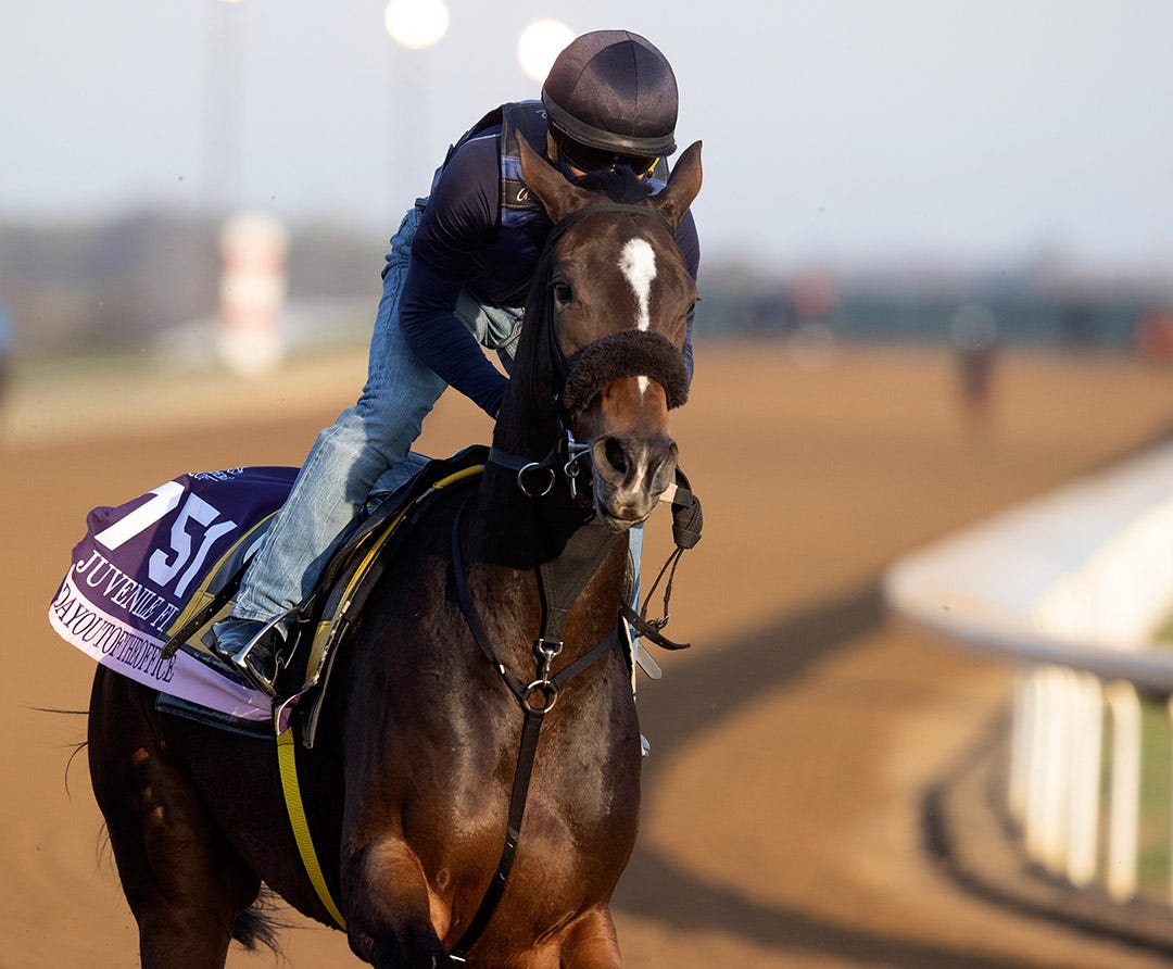 LEXINGTON, Ky. – Dayoutoftheoffice, still unraced since finishing second in the Breeders’ Cup Juvenile Fillies here last fall, will run in the seven-furlong Eight Belles on the April 30 Kentucky Oaks undercard, assuming she won’t have enough points to make the 14-horse lineup for the Oaks itself, trainer Tim Hamm said this week.