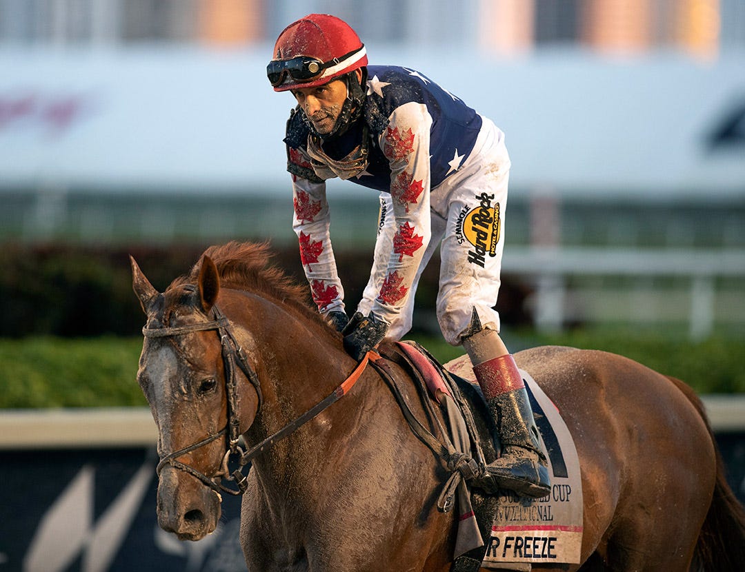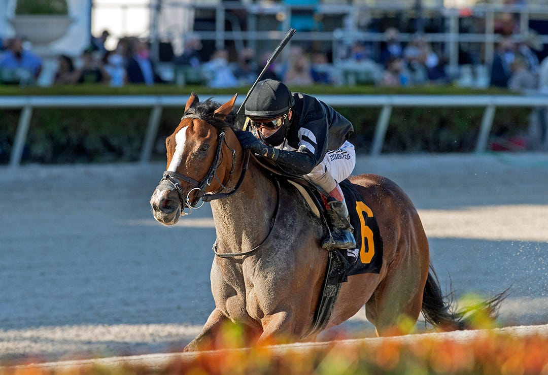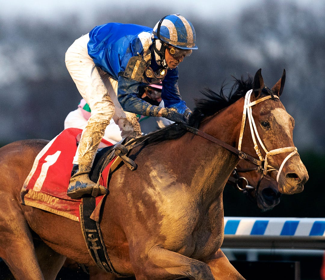 The 55-year-old, who posted his first win at Penn National in 1985, had Arabian Story ($10.40) well back early in the six-furlong allowance/optional-claiming race, steadily advanced to the far turn, angled to the inside, rallied to take the lead by the eighth pole, and drew off to win by 2 1/4 lengths in 1:10.06. The 5-year-old gelded son of Fed Biz is owned by Terri Ferguson and trained by Chad Ferguson.