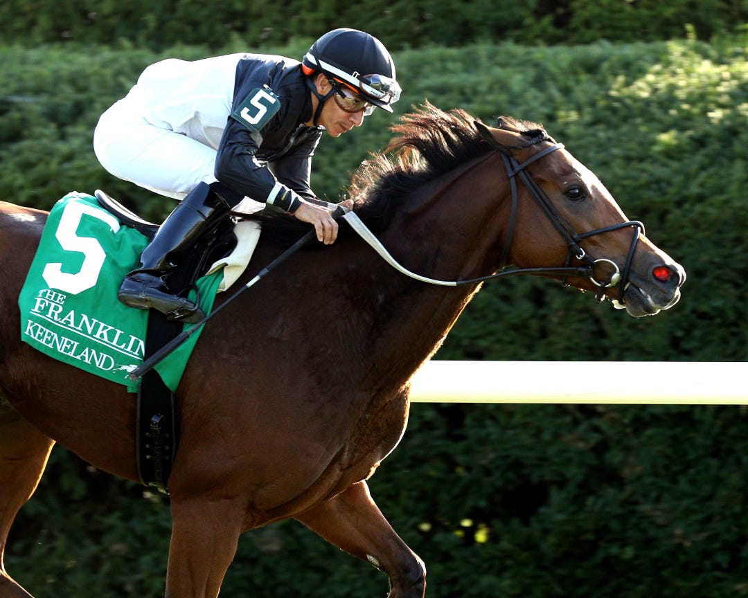 Fierceness, starting just off of workmate Tuscan Sky, went in splits of 12.71 seconds, 24.83, and came home in 24.85, per Daily Racing Form clocker Mike Welsch, who had Fierceness galloping out five furlongs in 1:02.63 and six furlongs in 1:15.58 over a rather dull-playing surface.