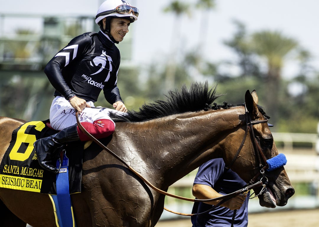 Moran, 30, had watched the 4-year-old Seismic Beauty take command of the $200,000 Santa Margarita Stakes at the start and lead throughout, sailing to a five-length win in her stakes debut.