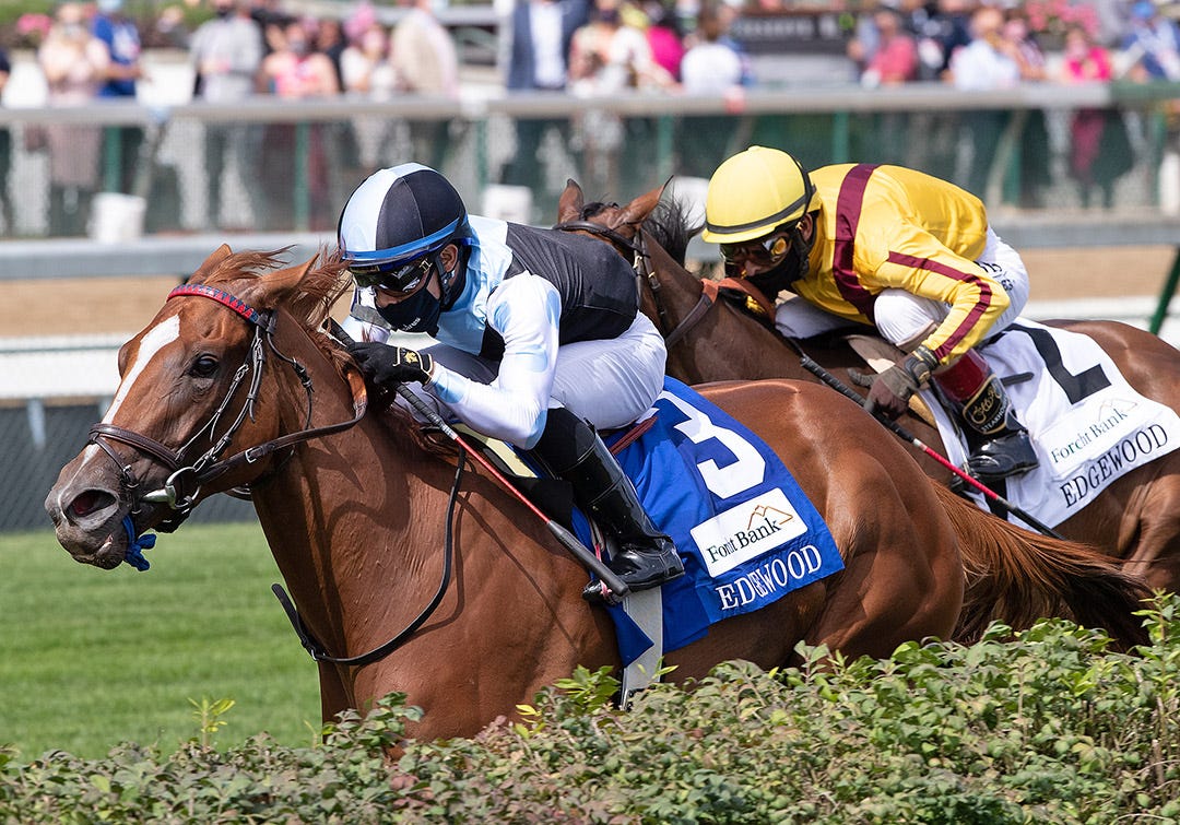 Midnight Bourbon scored a second-start Ellis Park one-mile maiden win before finishing second in the Grade 3 Iroquois, where Sittin on Go beat him 2 1/2 lengths, and third in the Grade 1 Champagne, won in a romp by Midnight Bourbon’s stablemate, Jackie’s Warrior.