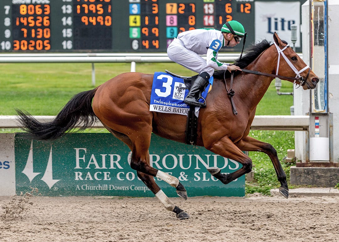 Wells Bayou came out of relative obscurity to finish second in the Southwest Stakes last February at Oaklawn Park, after which he came to Fair Grounds and wired the Louisiana Derby. He set a fast pace and faded to fifth in a division of the Arkansas Derby on May 2 and hasn’t started since, his 3-year-old season curtailed by cannon-bone bruising.