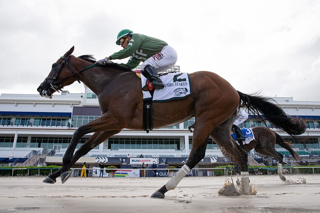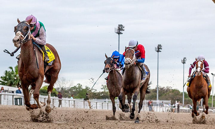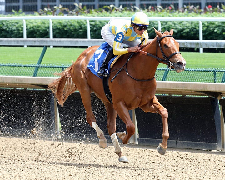 Breeze on By, trained by Ralph Nicks, wins the Dr. Fager division of the Florida Sire Stakes on Aug. 1 at Gulfstream Park.