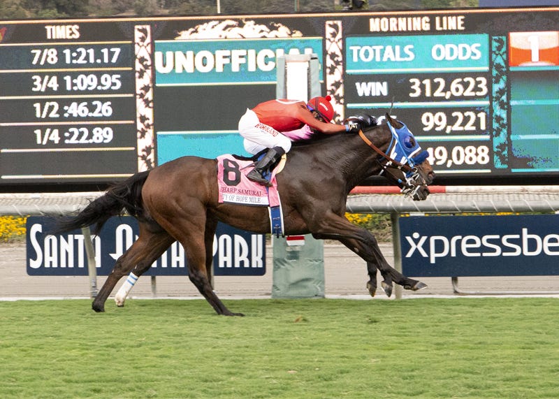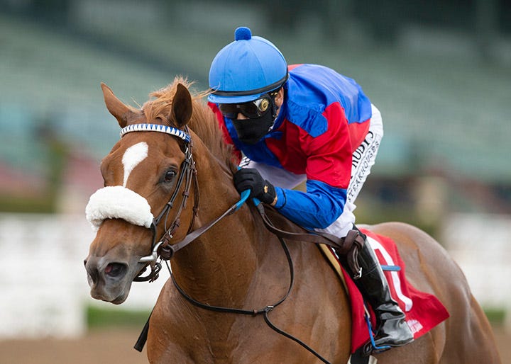 Givemetwenty earned a career-high Beyer Speed Figure of 87 for his win in the Not Surprising. The mile turf race was for 3-year-olds, and the son of Declaration of War covered the two-turn distance in a quick 1:33.71.