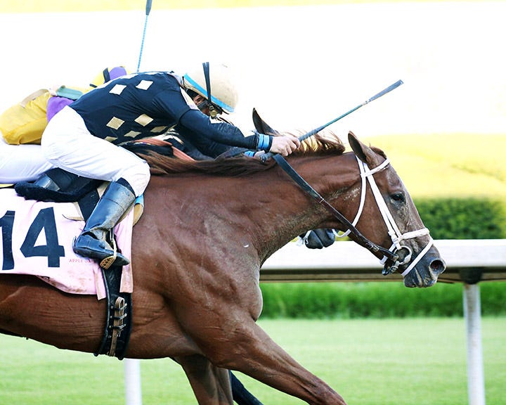 Apprentice jockey Keith James Asmussen won for the first time in his riding career Sunday at Lone Star Park. He took the nightcap on Inis Gluaire ($3.20), a half-brother to Woodbine Oaks winner Roan Inish who is trained by his father, Steve Asmussen.