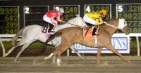 South Africa settled behind the pace of the six-furlong race Saturday, then drifted out near the middle of the track coming into the stretch. He got back on course in the drive and won by three-quarters of a length under Jamie Theriot.