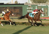 A.P. Adventure passes the test on Sunday at Santa Anita, going from maiden win to Grade 3 stakes victory in her second career start in the $100,000 Santa Ysabel Stakes.