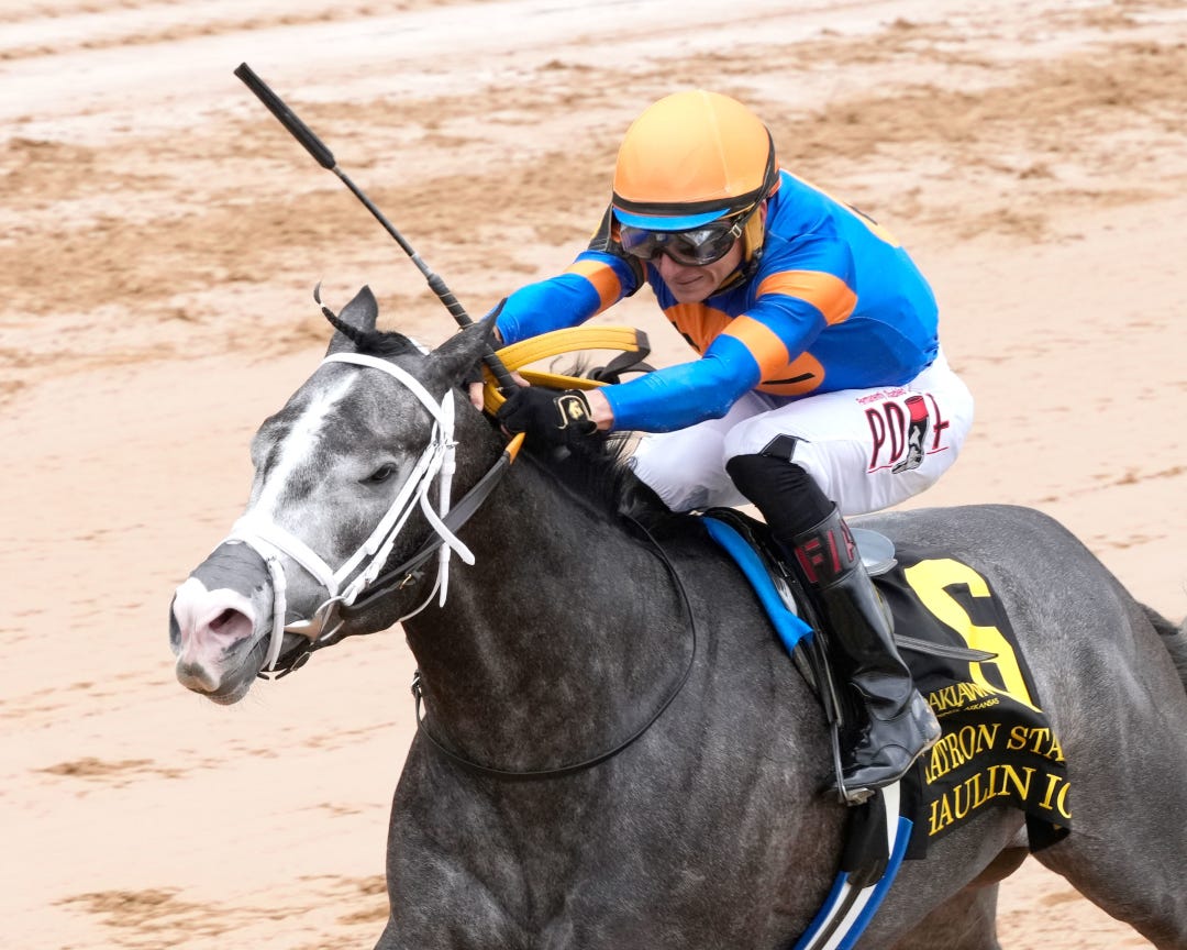 HOT SPRINGS, Ark. – Skippylongstocking will start as the 123-pound highweight Saturday when he attempts to win the Grade 2, $1.25 million Oaklawn Handicap for the second year in a row. He is part of a field of eight for the 1 1/8-mile race and will start from post 4.