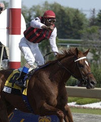 Chindi, a 9-year-old gelding who captured his first Iowa Sprint in 1998, rated at the back of the pack under jockey Tim Doocy through a contested half-mile run in 44.63 seconds. Doocy weaved his way through traffic racing near the inside through the stretch and Chindi got up at the wire to score a head victory.