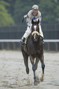 Ridden by Gary Stevens, Santa Catarina finished 1 1-16 miles in 1:41.62. The final time was a stakes record, but only the fifth time the Oaks has been run over 1 1-16 miles.