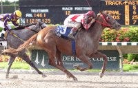 After placing in five major stakes in the last 10 months, Santa Catarina dominated four opponents in the Grade 2 Oaks, closing from last to win by a convincing four lengths over Buffythecenterfold.