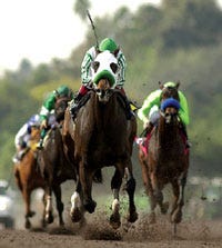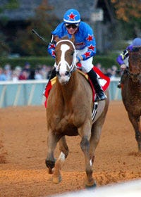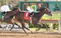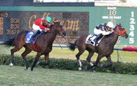 Kafwain, last after a quarter-mile, moved four paths wide on the turn to swoop past the leaders, then drew clear under a confident ride by Victor Espinoza. Sum Trick, an invader from Sunland Park, finished second after participating in a torrid pace duel.