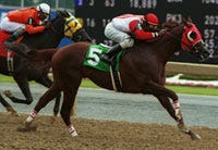 Baze won the first race aboard Twelveyearslater ($6.20). He won the second aboard River Bridge ($4.40) when original winner Madison Davis was disqualified and placed last. He won the fifth aboard Colonel Kelly ($5.80), then teamed with leading trainer Jerry Hollendorfer, who had three wins, with Lucky Sabre ($15.60) in the sixth. His final winner was aboard Surprise Halo ($5) in the eighth.
