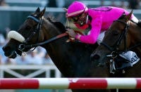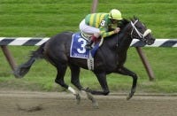 Take Me Up ($4.20) stalked the pacesetters to the second turn of the 1 1/16-mile Hayes for older statebreds under jockey Perry Compton before rallying to take the lead leaving the furlong marker. He was timed in 1:44.21.