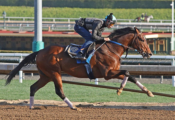 Cistron, shown training at Santa Anita on Feb. 24, has not raced since winning the Bing Crosby at Del Mar.