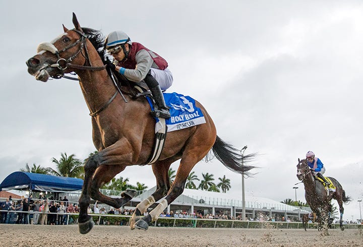 BOYNTON BEACH, Fla. – Spa City, winner of a highly rated maiden race on Feb. 8 at Gulfstream Park, is heading to stakes competition next, with the Tampa Bay Derby on March 7 his target. He had his final work for that race Friday morning here at the Palm Meadows training center, when he went five furlongs in 1:00.85 under exercise rider Rob Massey.