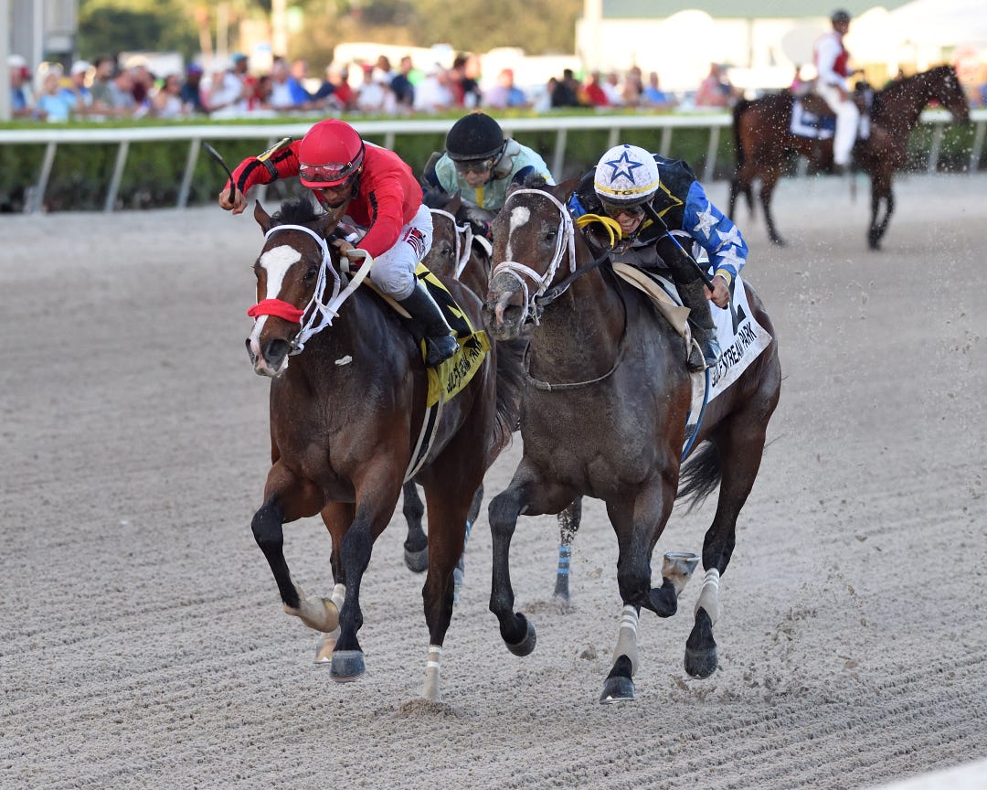 Share the Upside put up the meet’s highest Beyer Speed Figure to date when he popped a 104 winning the $125,000 King Cotton. A few races prior, the Group 1-winning mare La Renoleta rolled by 9 3/4 lengths in her North American debut to improve her career record to 5 for 5.