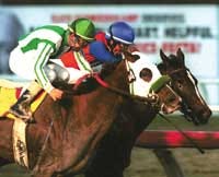JAMAICA, N.Y. - Tony Dutrow continued his dominance of New York's winter stakes, and Saratoga Blues inched closer to a trip down the Triple Crown trail with a two-length victory in Saturday's $82,525 Whirlaway Stakes* at Aqueduct.