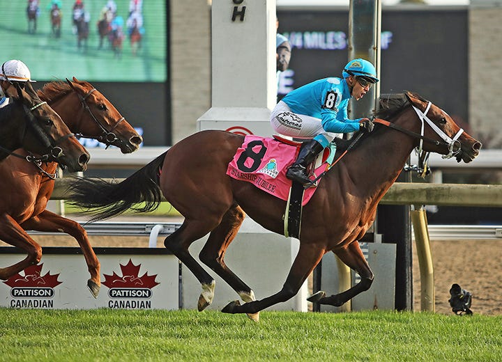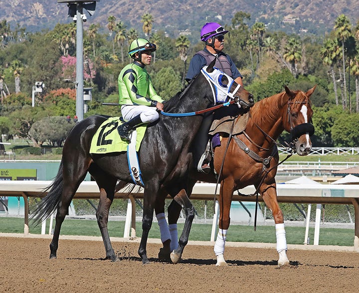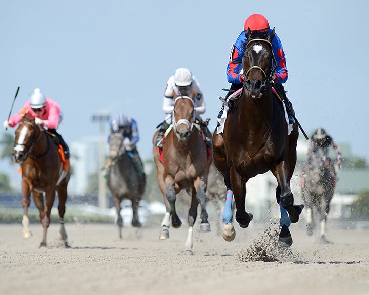 War Stopper, a son of Declaration of War, rolled to a front-running, four-length victory in the one-mile race. He covered the distance in 1:37.54 – a solid time for this track – and earned a 94 Beyer Speed Figure. War Stopper was making his fourth start for owner Mike Salerno and trainer Rudy Rodriguez.