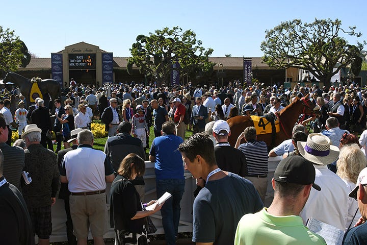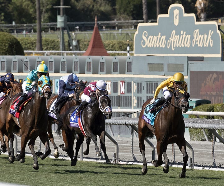 Total wagering on the 14 Breeders’ Cup races held on Friday and Saturday at Santa Anita Park in Arcadia, Calif., set a record for the fourth year in a row, increasing nearly 12 percent over the total amount bet last year on a 14-race card at Churchill Downs in Louisville, according to charts of the races.